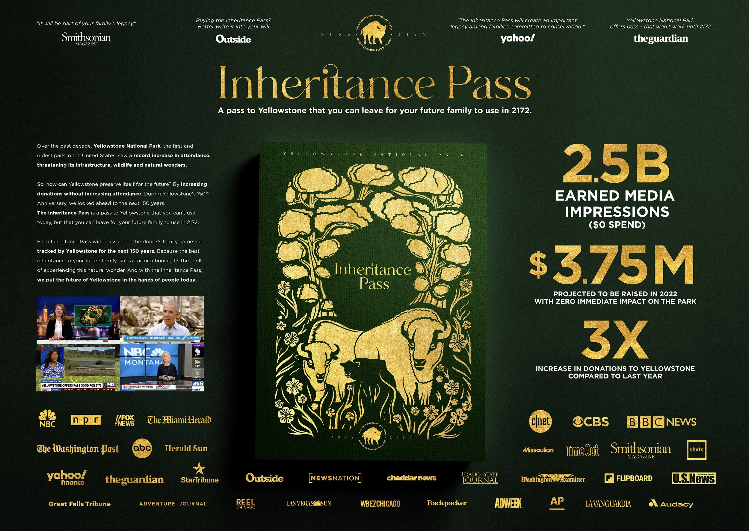 We learned that support for environmental causes isn’t self-motivated, but spurred by a desire to see better lives for future generations, and created the “Inheritance Pass,” redeemable in 2172, 150 years in the future. The award-winning effort generated 2.5B media impressions and tripled YOY donations without bringing unwanted attendance.